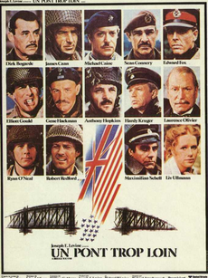 欧战尾声,盟军上下逐渐弥漫着乐观的情绪。为了提前结束战争,各地盟军将领认为只要一番猛攻,便可提早直捣柏林结束战争。于是轻率地将大批伞兵空投在德军营地背后,去攻占阿纳姆的那座横跨莱茵河的大桥。不料遭遇德军的顽强抵抗,盟军付出了伤亡惨重的代价。这场堪称二战中最具戏剧性的战役,终以盟军的惨痛失败而告终。由奥斯卡金像奖得奖导演理查德·阿滕伯勒执导的战争巨片《遥远的桥》,根据科尼利厄斯·瑞恩的同名小说改编而成。影片表现和讴歌了盟军在二战中浴血奋战的斗争精神,被誉为电影史上的超级战争巨片。本片的明星阵容空前强大,聚集了诸如詹姆斯·卡恩、迈克尔·凯恩、肖恩·康纳利、罗伯特·雷德福、安东尼·霍普金斯等数国的数十位明星。本片荣获1978年第31届英国电影和电视艺术学院奖最佳摄影、最佳男配角、最佳原声等多项大奖与提名。